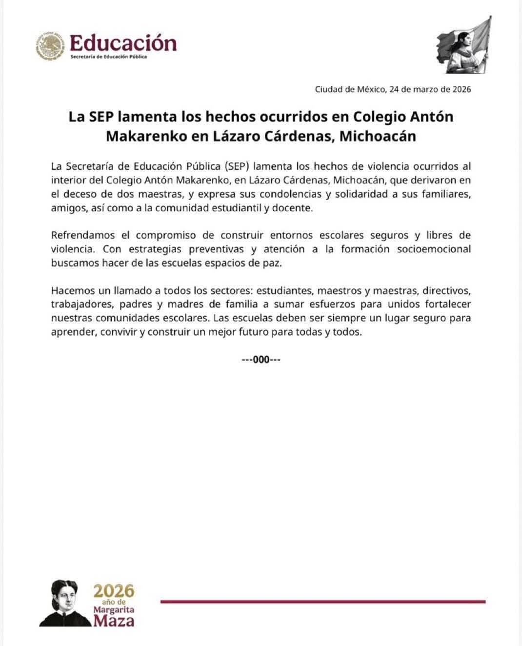 Por su parte, la preparatoria Preparatoria Antón Makárenko emitió un comunicado en el que lamentó profundamente el asesinato de las dos docentes y expresó el impacto dentro de su comunidad educativa.