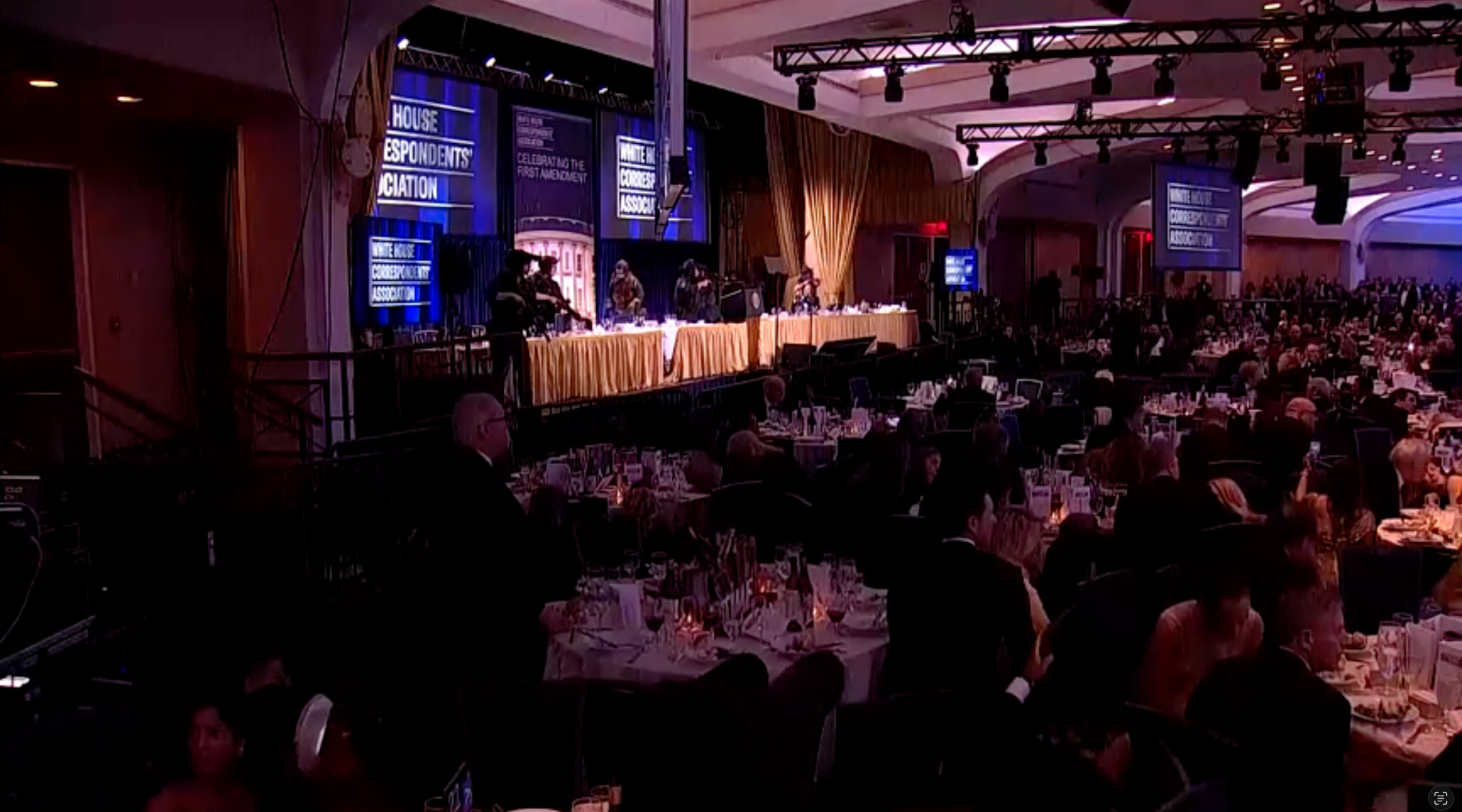 Las aparentes detonaciones se produjeron fuera de la sala de baile donde se estaba celebrando la cena, la cual estaba presidida por una mesa sobre un escenario en la que estaban sentados el presidente y la primera dama.