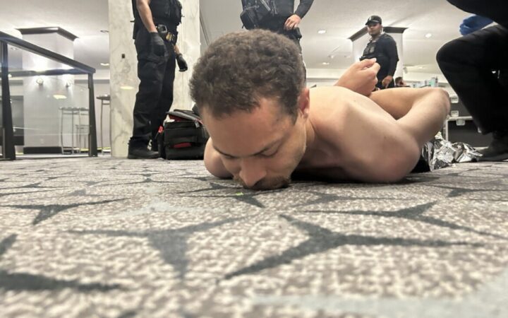 Trump compartió dos imágenes que muestran al sospechoso tendido en el suelo, boca abajo y sin ropa, mientras es custodiado por agentes de las fuerzas de seguridad tras ser reducido.