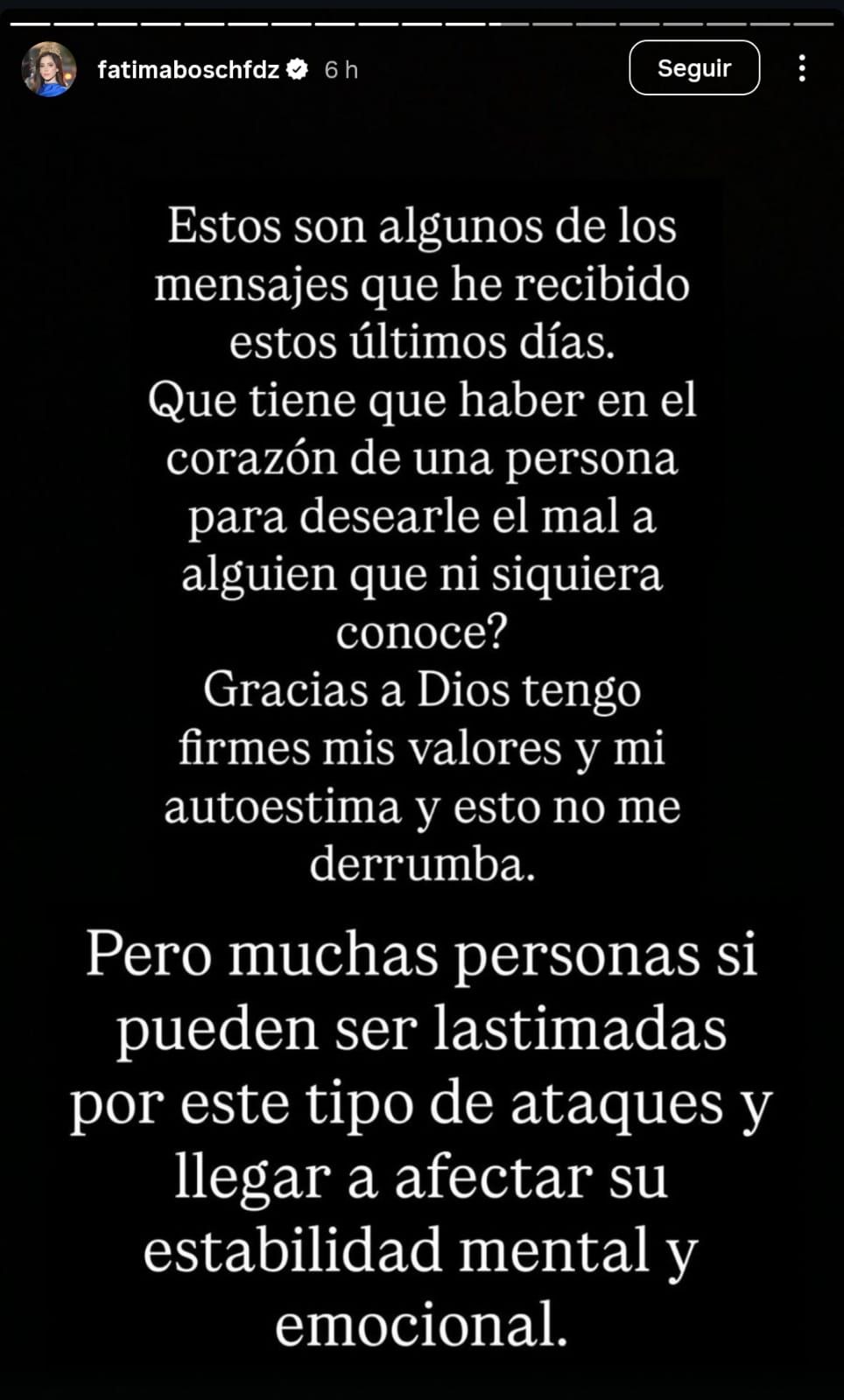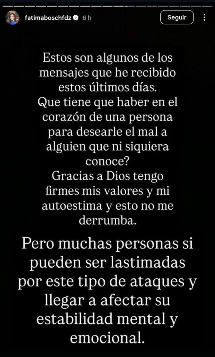 En respuesta, Bosch cuestionó: “¿Qué tiene que haber en el corazón de una persona para desearle el mal a alguien que ni siquiera conoce?”.