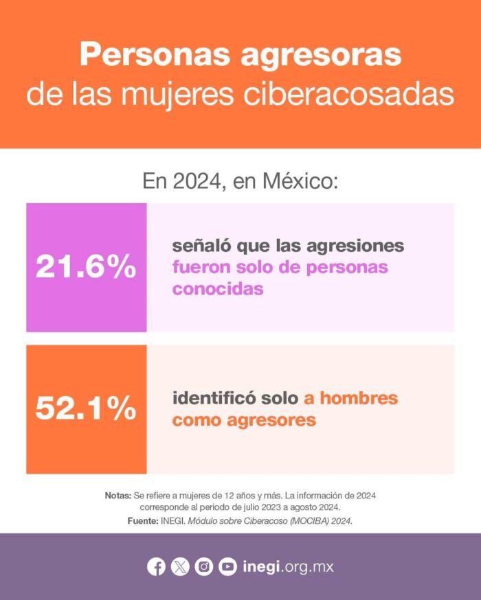 El Inegi señaló que estos datos permiten dimensionar la violencia digital como una extensión de la violencia de género, al presentarse con mayor severidad y con componentes sexuales más marcados contra las mujeres.