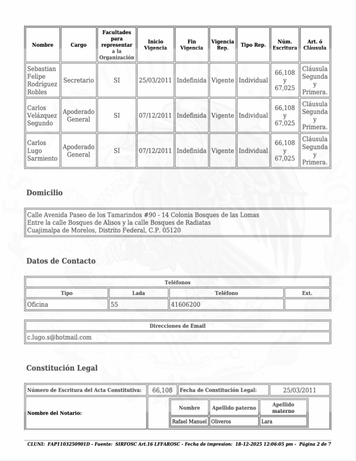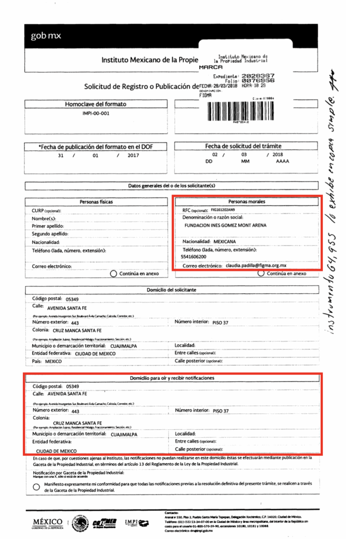 En dicho registro, dio como uno de sus domicilios el piso 37 de la Torre Impulso, sitio donde se encontraba la sede de la Fundación FIGMA y donde tres años después el gobierno de López Obrador detectaría la existencia del centro espía en el piso 35.