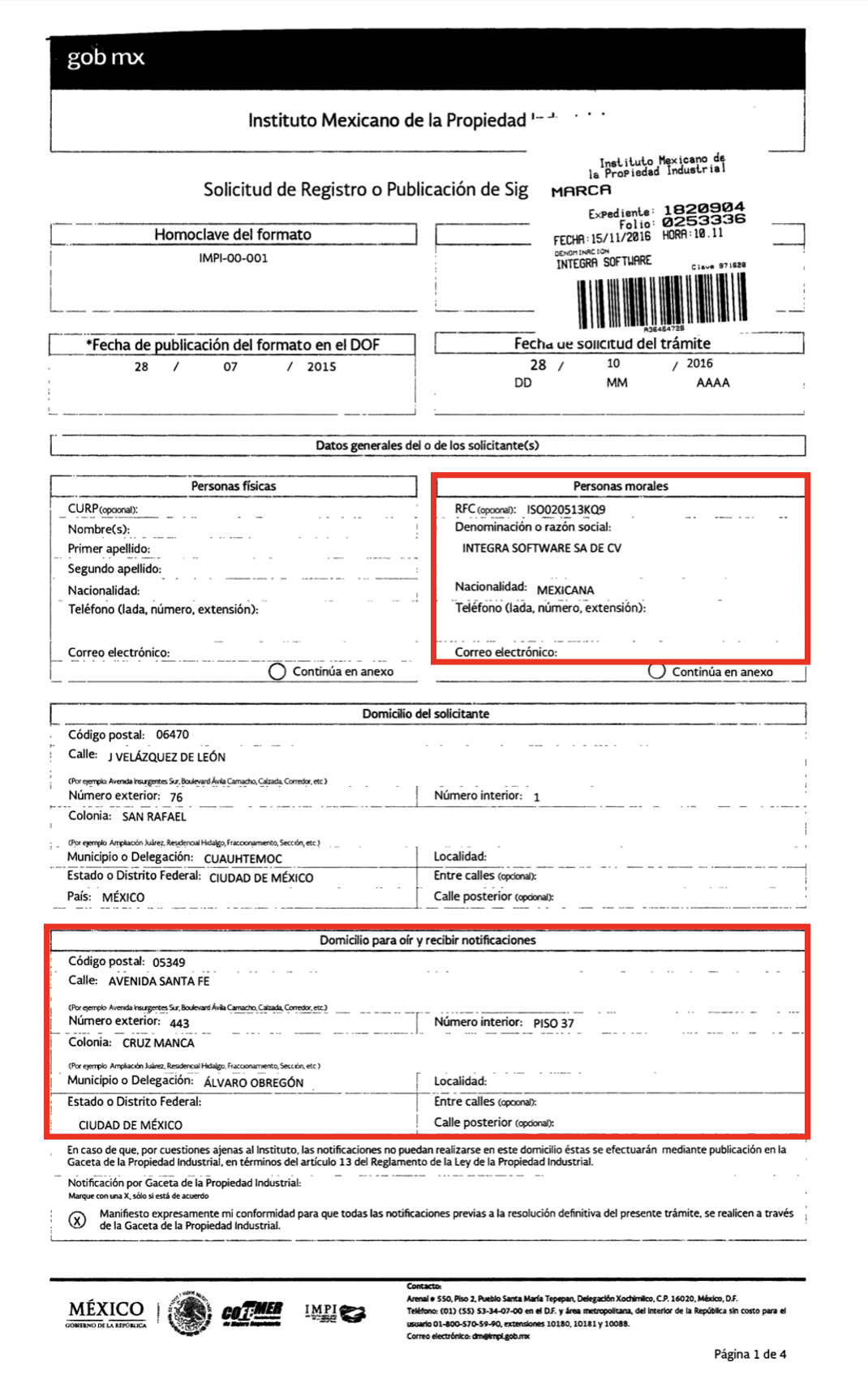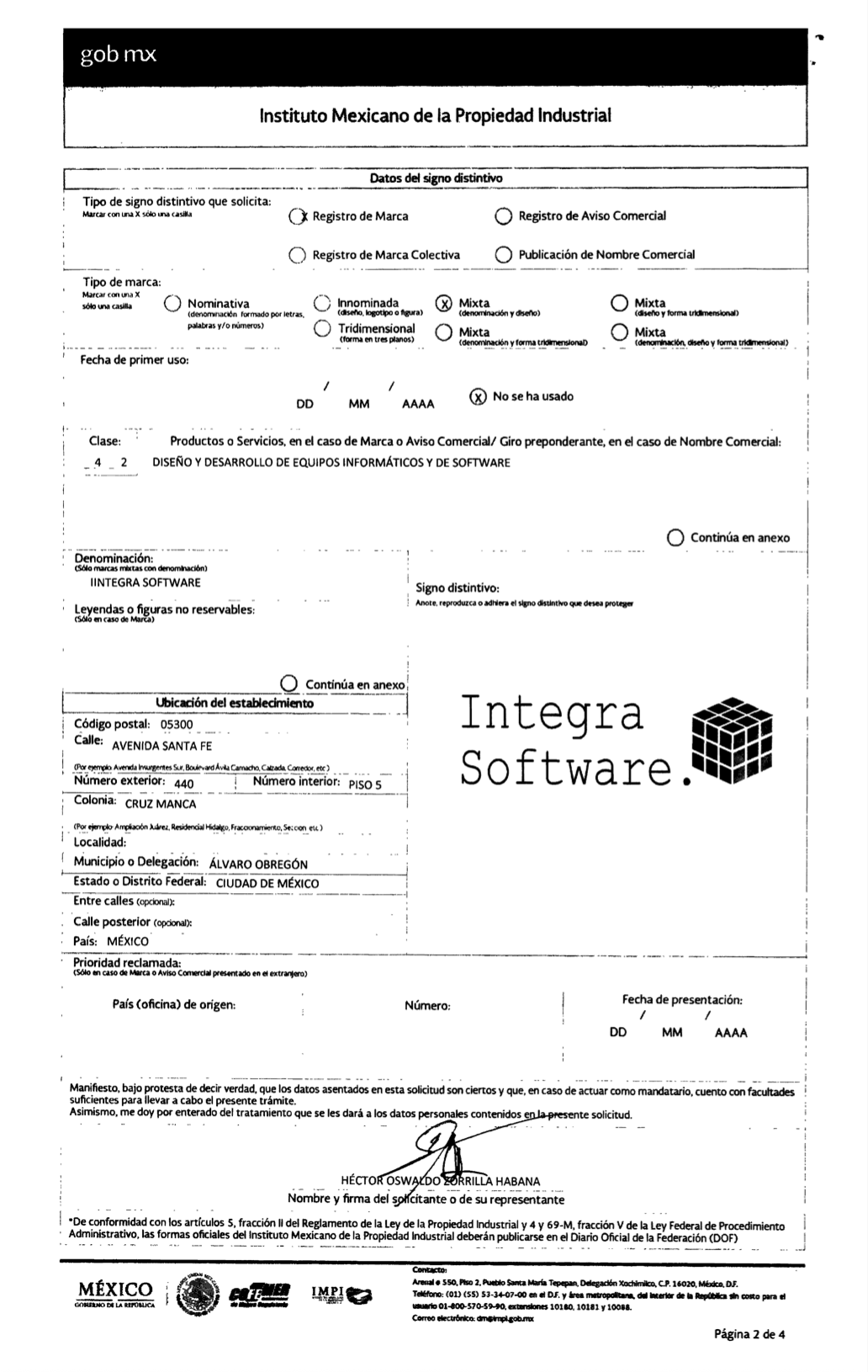 En octubre de 2016, cuatro meses antes de firmar el contrato de espionaje con el gobierno de Aureoles en Michoacán, Integra Software SA de CV acudió ante el Instituto Mexicano de la Propiedad Industrial (IMPI) a registrar su marca del mismo nombre.