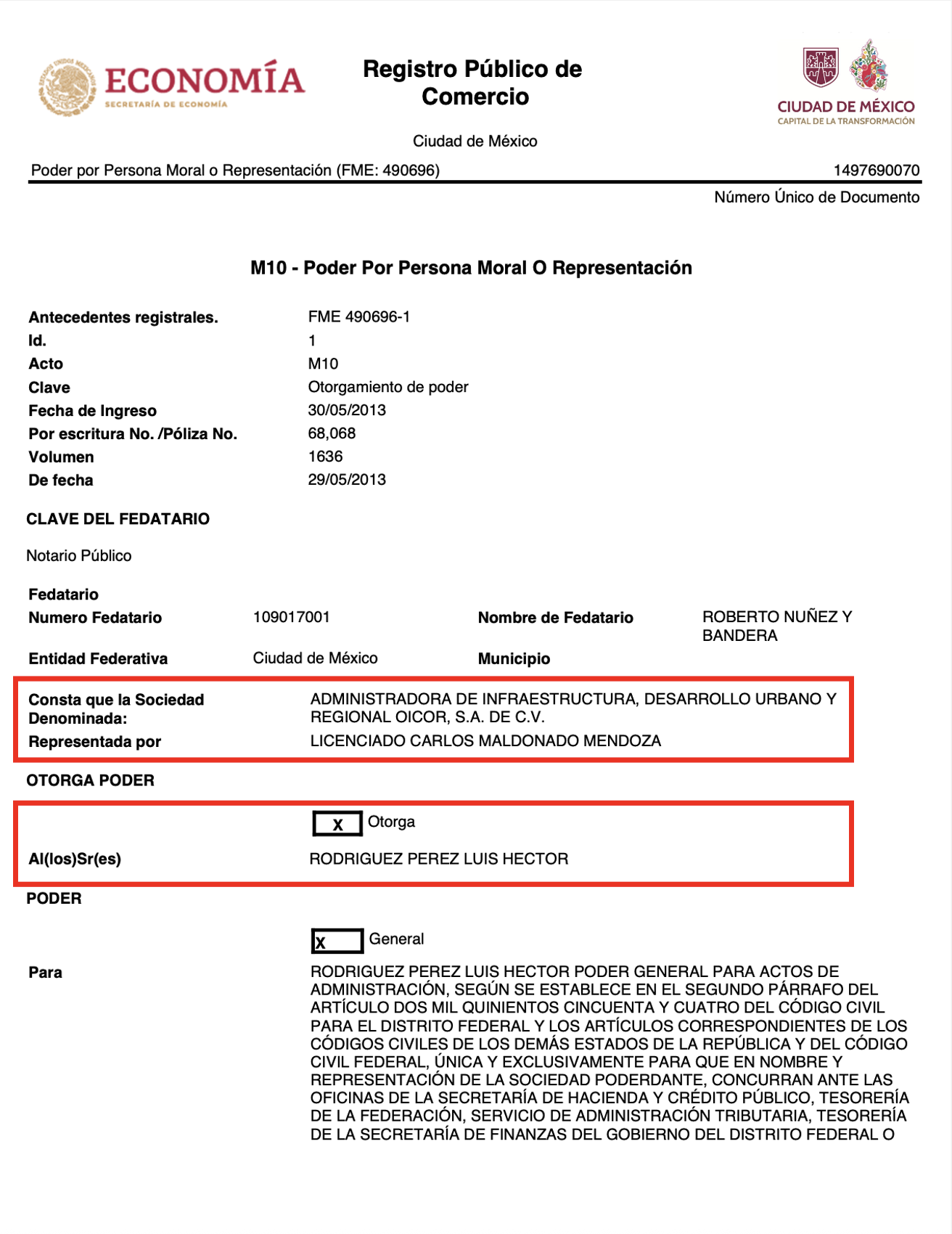 Rodríguez Pérez no solo fue subordinado de Maldonado Mendoza en la Secretaría de Finanzas, desde 2013 también ha sido apoderado legal de su empresa Administradora de Infraestructura, Desarrollo Urbano y Regional Oicor SA de CV.