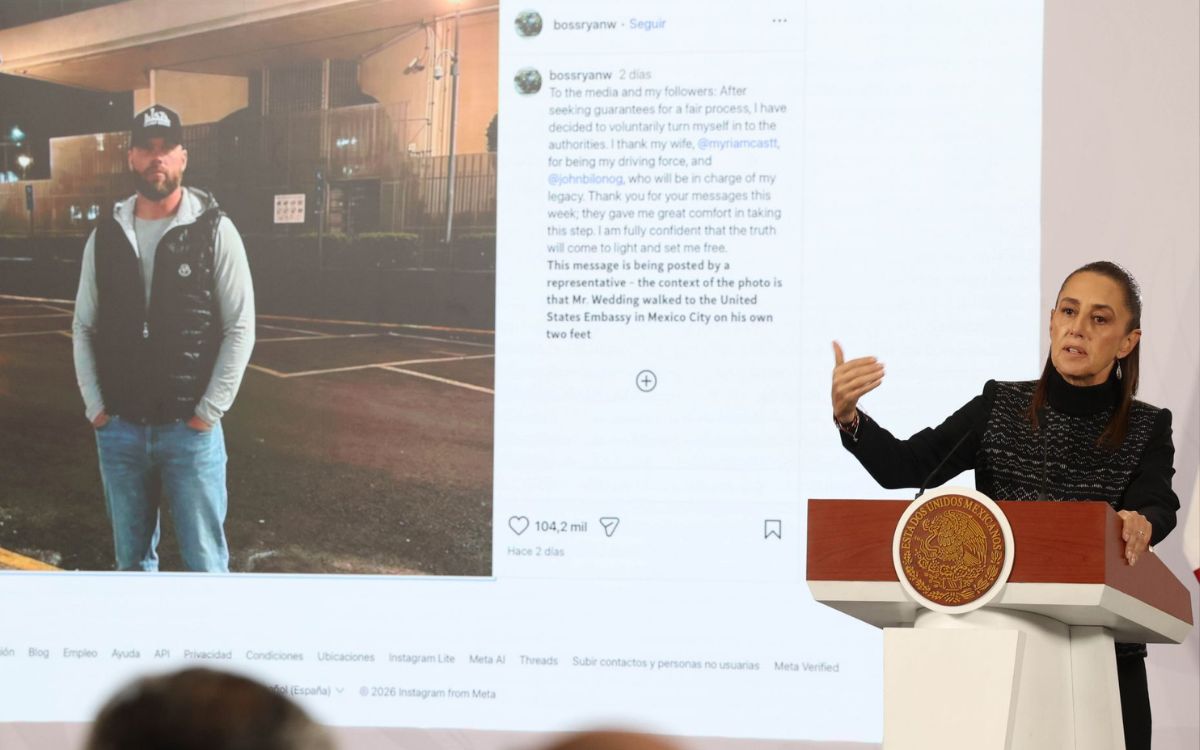 En torno al envío desde México a Estados Unidos de Ryan Wedding, ciudadano canadiense acusado de narcotráfico, la presidenta mexicana aseguró que la detención fue realizada tras una entrega voluntaria en las instalaciones de la Embajada de Estados Unidos en la capital.