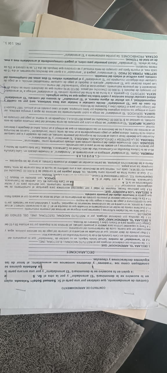 Como parte de su deslinde, la carta va acompañada de fotografías del contrato de arrendamiento celebrado con una empresa administradora, la cual —según expone— subarrendó posteriormente el inmueble a una persona distinta a César Alejandro Sepúlveda Arellano, con el objetivo de acreditar que no existió relación directa entre el propietario y la persona mencionada en los reportes militares.