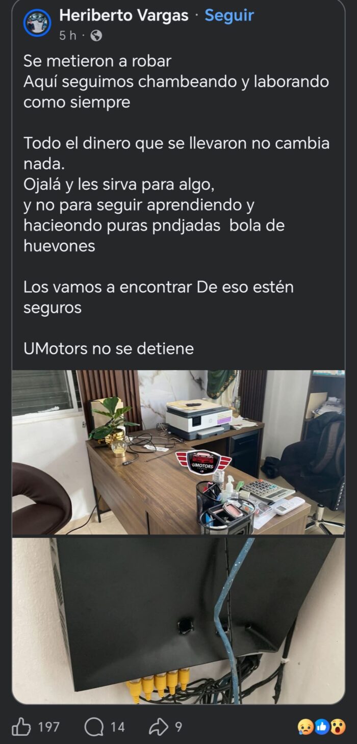 En un mensaje publicado durante el fin de semana en sus redes sociales, Vargas aseguró que, a pesar del robo, no detendrá su proyecto de apoyo a la familia.