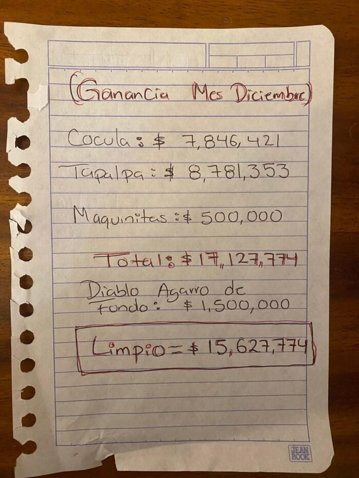 Además de los gastos, la organización criminal también reportó ganancias en diciembre por 17 millones 127 mil 774 pesos, además de 500 mil pesos obtenidos de “maquinitas” tragamonedas, tan solo en Cocula y Tapalpa.