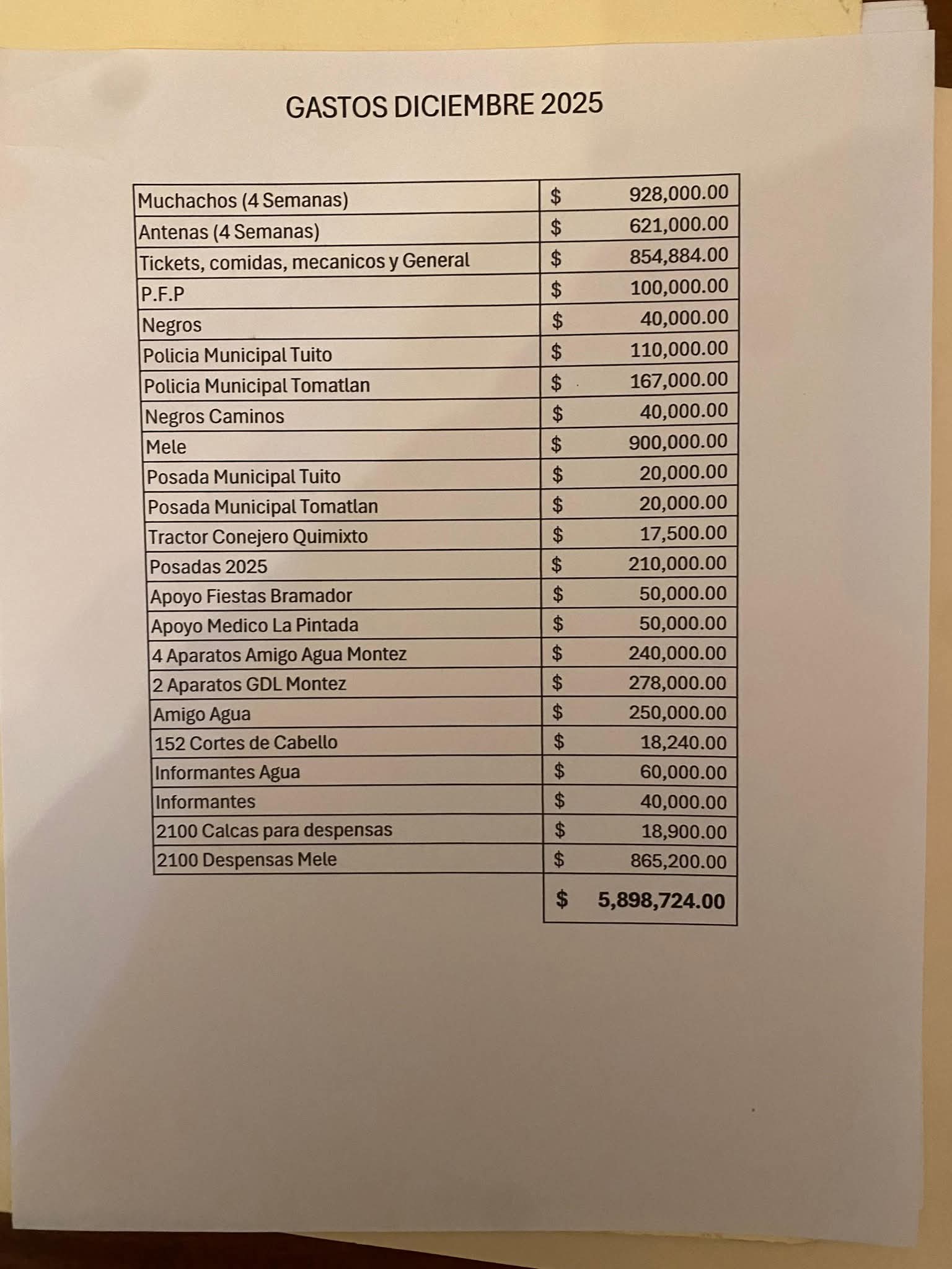 Esa cantidad representa menos del diez por ciento de lo ingresado y aparentemente no comprometió las finanzas del mes, y corresponden únicamente a dos municipios documentados en las hojas.