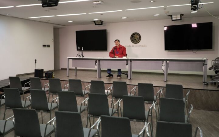 Este martes, el senador Gerardo Fernández Noroña ofreció una conferencia de prensa frente a una sala vacía luego de haber lanzado durante el Pleno ataques verbales contra de la alcaldesa Grecia Quiroz, viuda de Carlos Manzo.
