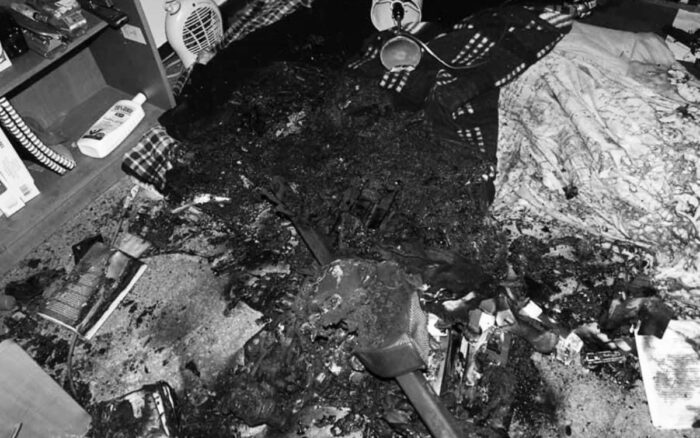 Posteriormente, los agresores se dirigieron al edificio 6, donde se encontraba Lugo Macías. Las sobrevivientes afirman que los atacantes prendieron fuego a las puertas para forzar su entrada, resultando en quemaduras graves para el ahora detenido, quien intentaba sofocar las llamas.