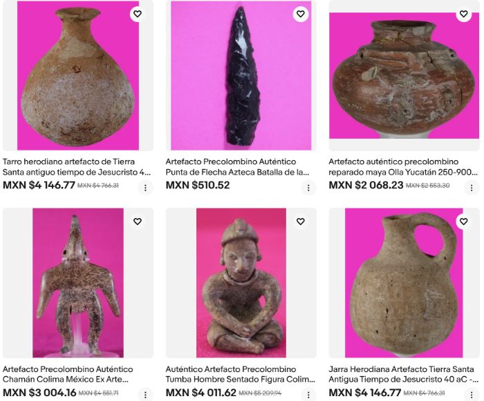 “Tras la revisión de anuncios en la plataforma eBay especialistas del Instituto Nacional de Antropología e Historia (INAH) determinaron que 195 piezas ofertadas por un usuario en Orlando, Florida, son piezas de origen prehispánico de nuestra nación”, apuntó en un mensaje en la red social X, Claudia Curiel de Icaza, titular de Cultura de México.