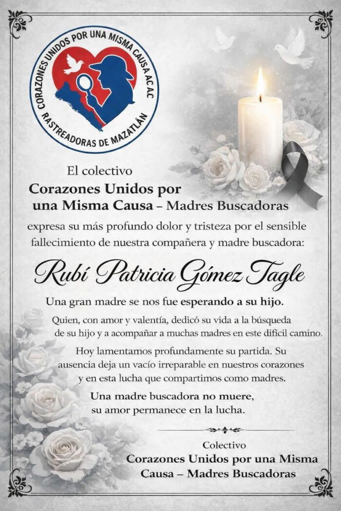De acuerdo con medios locales, la mujer era integrante del colectivo Corazones Unidos por una Misma Causa, organización conformada por madres buscadoras que participan en la localización de personas desaparecidas en el sur de Sinaloa.