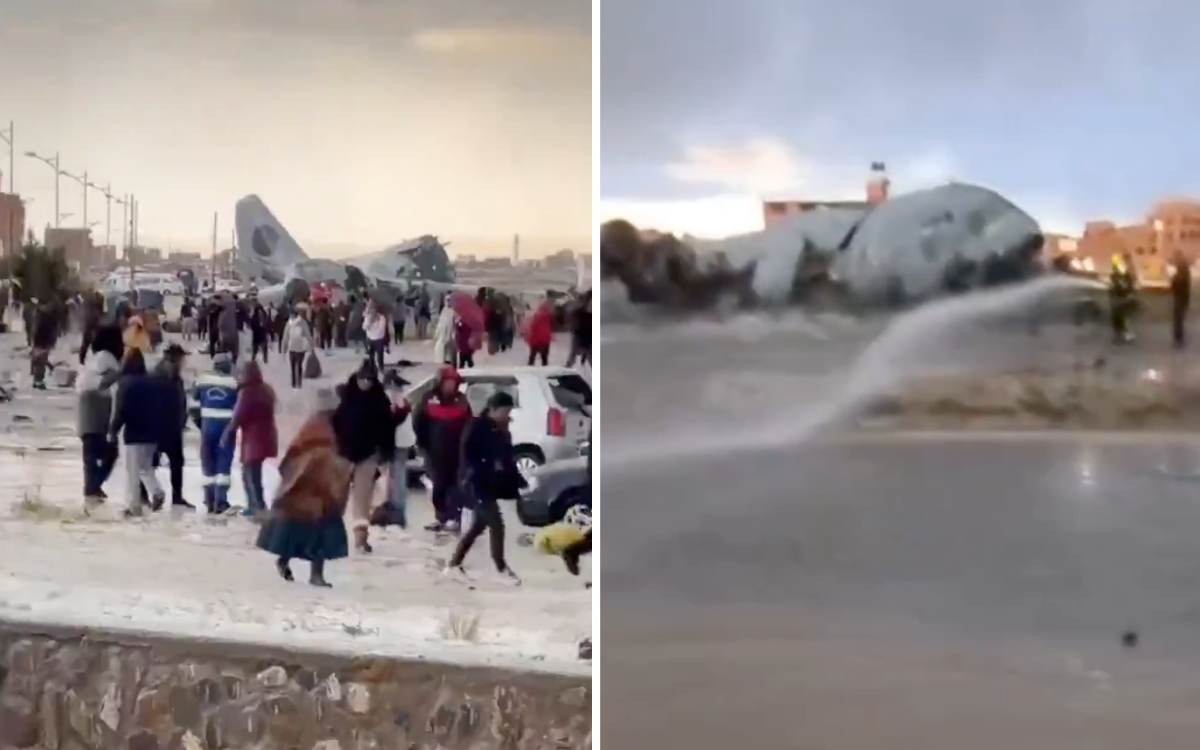 Una fuente oficial dijo a EFE que el avión, un Hércules de la Fuerza Aérea Boliviana (FAB), tocó tierra y no logró frenar, presumiblemente porque la pista se encontraba con hielo debido a una granizada que cayó más temprano en El Alto, por lo que terminó fuera del perímetro del aeropuerto.