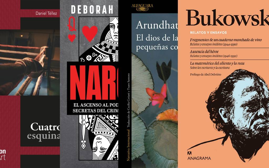 Si eres amante de Charles Bukowski y te interesa conocer parte de su laboratorio creativo, no te puedes perder el libro Relatos y ensayos. Una de las grandes narradoras de nuestro tiempo es la india Arundhati Roy, de quien llega la reedición de El dios de las pequeñas cosas, una de sus novelas más logrados. Toca turno a Deborah Bonello, de quien llega Narcas, una investigación que da santo y seña de las mujeres más poderosas dentro del crimen organizado. Cerramos nuestras recomendaciones con Cuatro esquinas, un poemario a través del cual Daniel Téllez rinde homenaje a estrellas del boxeo.