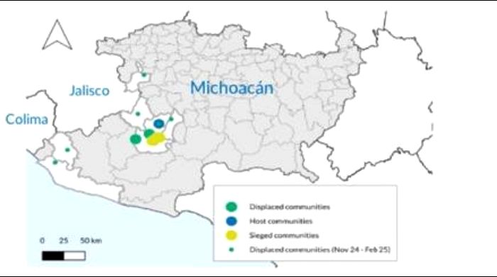 Después de que se desplegó a las fuerzas del orden en el área, unas 30 familias regresaron en febrero de 2025. Sin embargo, desde entonces, el acceso a servicios esenciales sigue siendo limitado, aumentando el riesgo de más desplazamientos. En este contexto, al menos 700 personas se trasladaron a la frontera norte de México con la intención de solicitar protección internacional en los Estados Unidos. Hasta ahora, permanecen en albergues en Tijuana, Baja California. Morelia también ha recibido varios cientos de personas desplazadas.