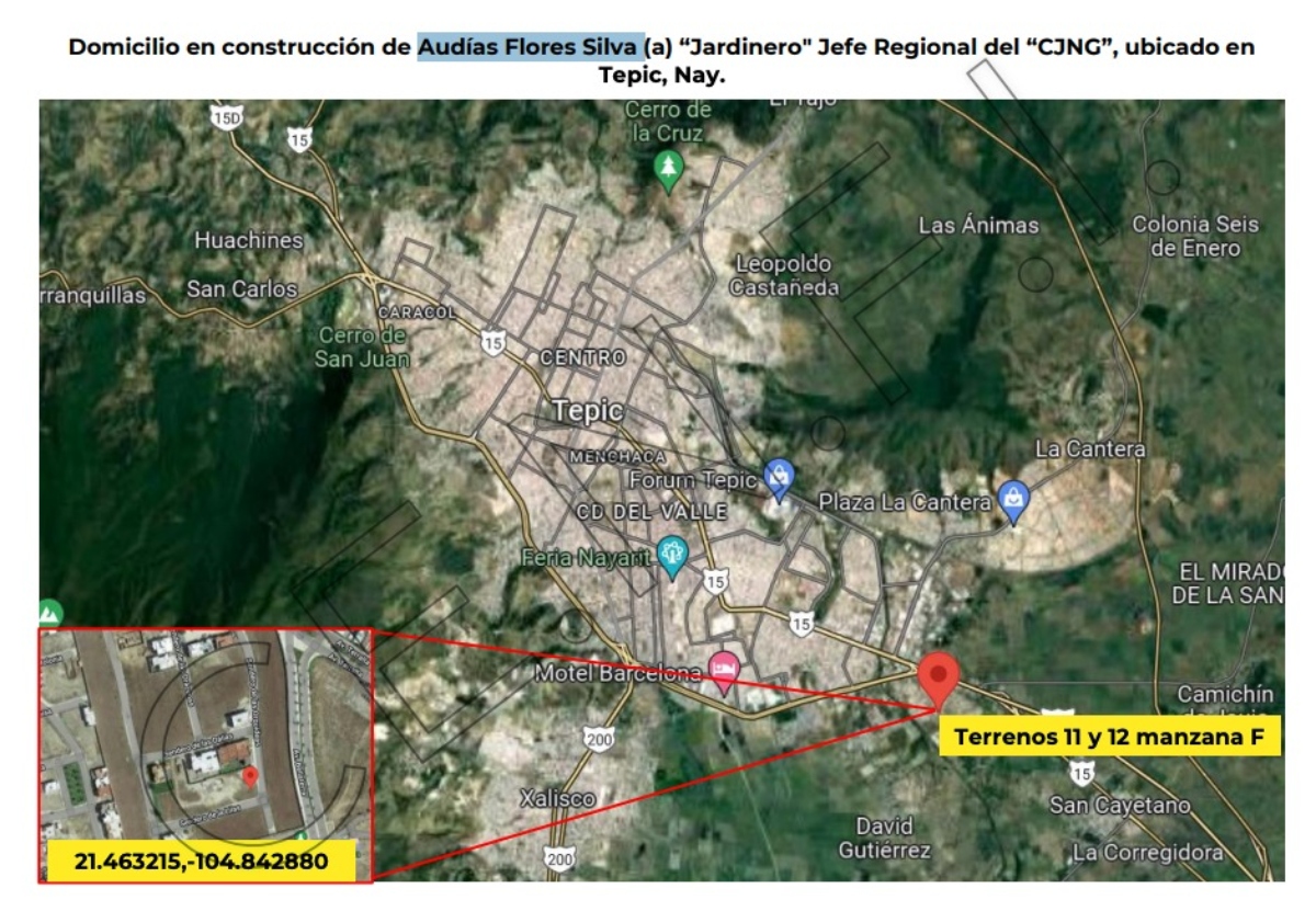 “Se identifica que Audias Flores Silva (a) “El Jardinero” es el principal operador de la producción y distribución de drogas, secuestros y extorsiones en San Pedro Lagunillas, Ahuacatlán, Acaponeta, Ixtlán del Rio, Amatlán de las Cañas y Jala, Nayarit; asimismo, realiza operaciones en Hostotipaquillo, Magdalena, Tequila, Amatitlán, San Marcos Etzatlán y El Arenal, del Estado de Jalisco”, señala el documento.