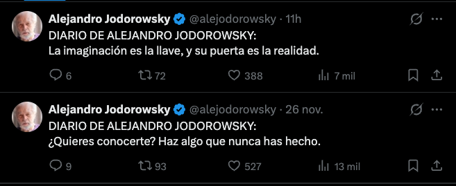 “Jodorowsky tiene una prolífica carrera como dramaturgo, director, actor, guionista y escritor“, señalaron en un comunicado conjunto la Secretaría de Cultura de México y el Instituto Nacional de Bellas Artes y Literatura (INBAL).