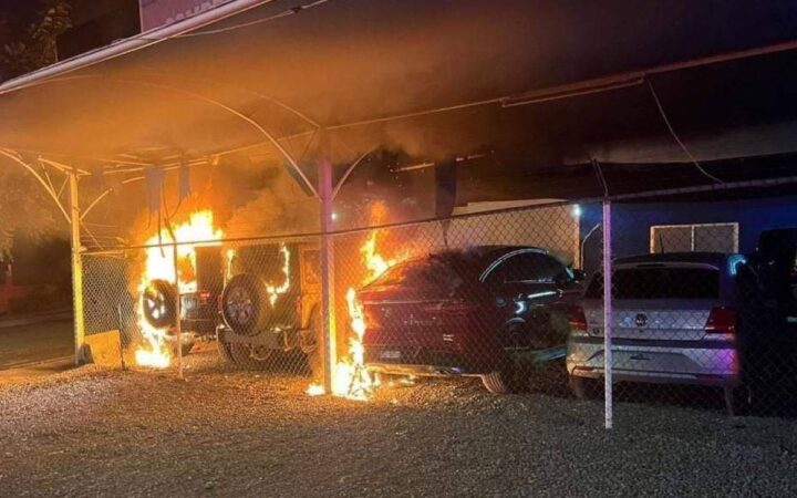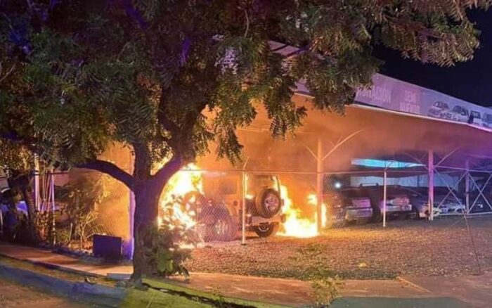 Además del robo de vehículos nuevos, presuntos delincuentes, en otro evento, incendiaron un lote de vehículos en la capital colimense.