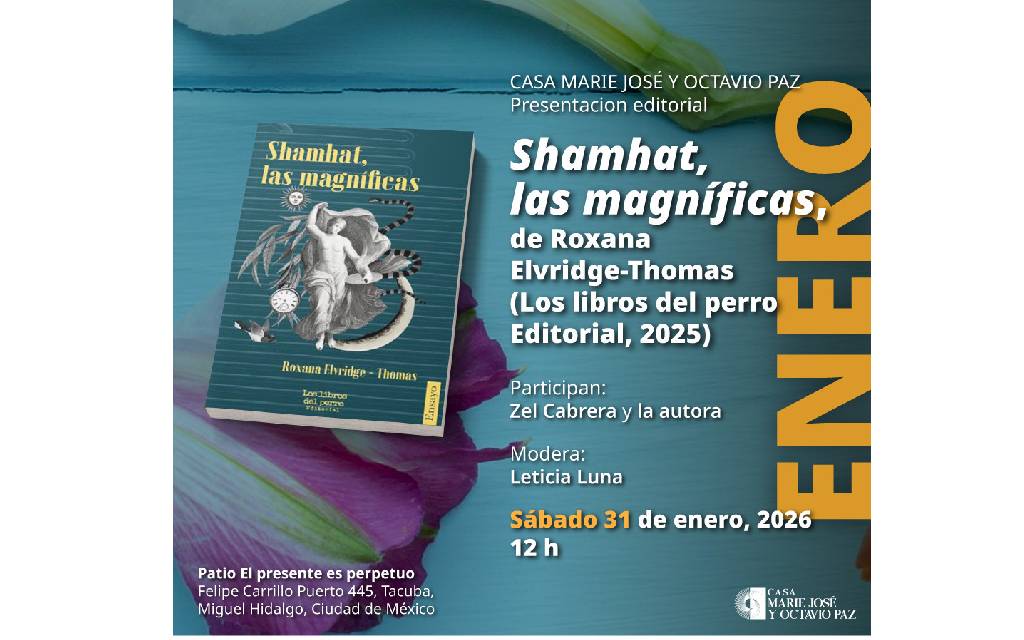 La presentación del libro se llevará a cabo el sábado 31 de enero de 2026, a las 12 h, en la Casa Marie José y Octavio Paz (Felipe Carillo Puerto 445, colonia Tacuba, alcaldía Miguel Hidalgo, Ciudad de México). La entrada es gratuita.