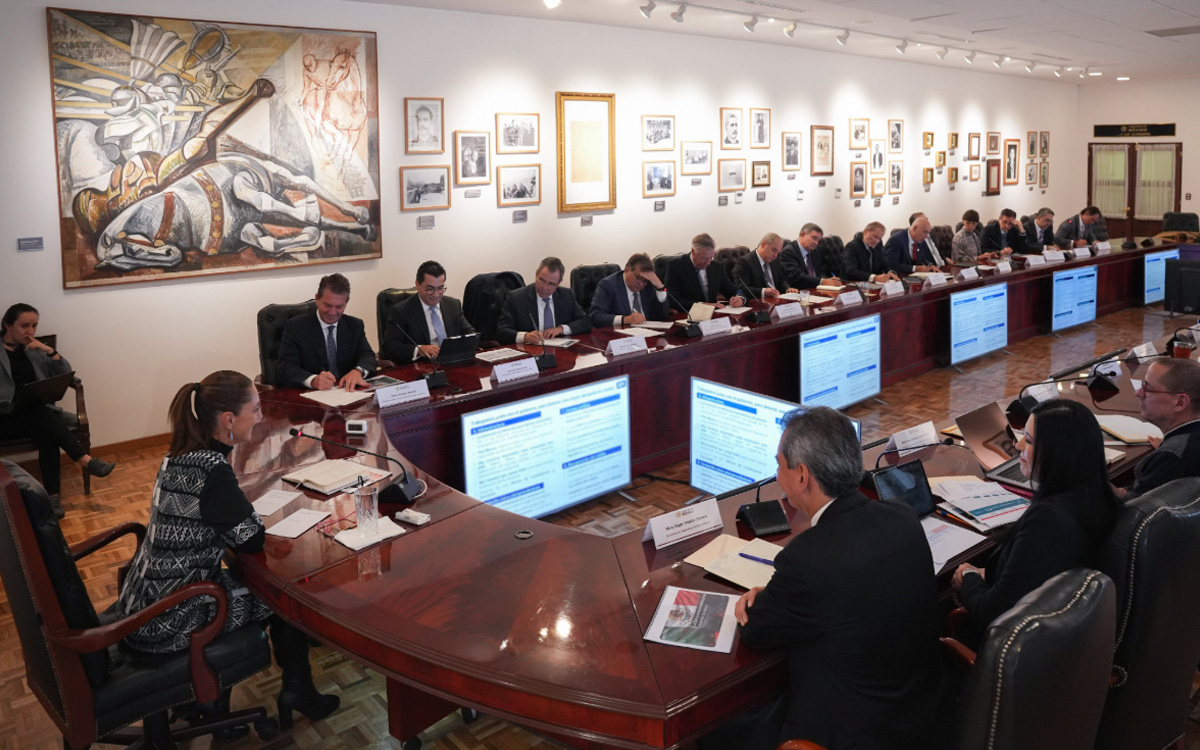 La presidenta de México, Claudia Sheinbaum, sostuvo el martes en Palacio Nacional una reunión con los principales actores del sistema financiero mexicano, con el fin de revisar las perspectivas económicas del país, en el contexto de la incertidumbre de la próxima negociación del tratado comercial con Estados Unidos y Canadá (T-MEC).