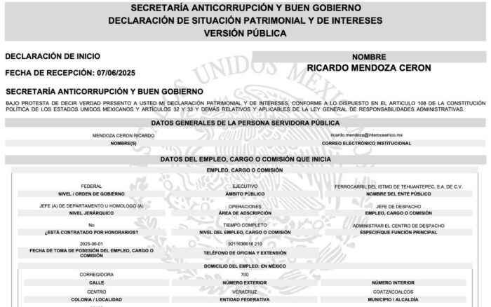 Ricardo Mendoza Cerón estaba contratado por la empresa estatal Ferrocarril del Istmo de Tehuantepec, S.A. de C.V., encargada del Tren Interoceánico.