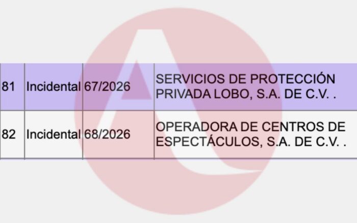 El amparo tramitado por Ocesa está identificado con el número de expediente 68/2026, mientras que el de Seguridad de Protección Privada Lobo se muestra con el numeral 67/2026. En ambos casos la autoridad judicial negó a las compañías otorgarles la suspensión provisional que solicitaron.