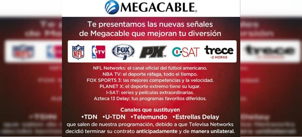 En ese entonces Televisa lamentó la decisión de Megacable y dijo que niega a sus clientes los canales más populares en entretenimiento, deportes y noticias.