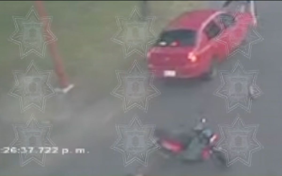 Este lunes, la policía municipal de Metepec, Estado de México, compartió un video en el que se ve a un automovilista embestir a una moto.