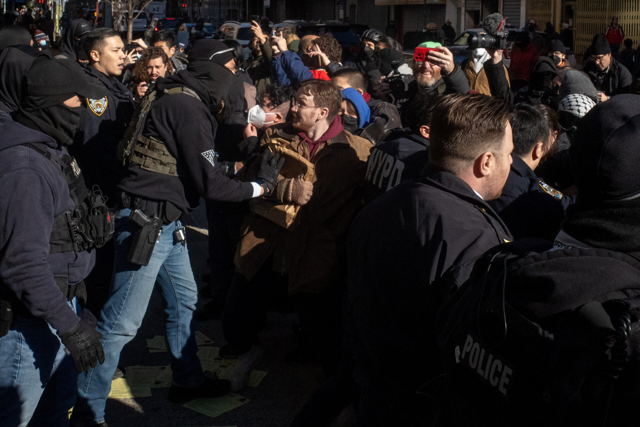 El Departamento de Policía de Nueva York (NYPD) dijo que había ordenado a los manifestantes que se dispersaran en repetidas ocasiones, pero no obedecieron, lo que resultó en la detención de varias personas.