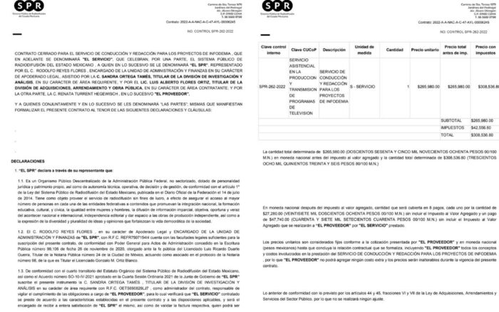 El SPR ha publicado 27  contratos de 2021 a 2026 para subcontratar servicios como “buscar y verificar noticias falsas para la creación de desmentidos”, redacción de guiones, conductores para el programa de TV de Infodemia MX y coordinadores del proyecto público; todos fueron dados mediante adjudicación directa.