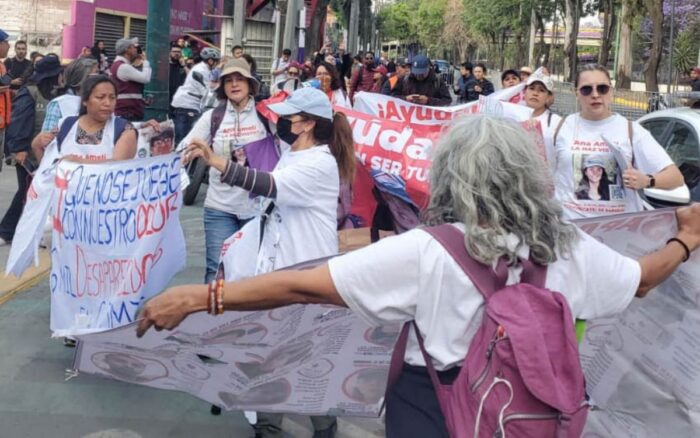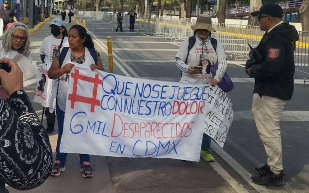 Las manifestantes colocaron fotografías, veladoras y mensajes escritos en el pavimento, mientras coreaban consignas relacionadas con la crisis de desapariciones. De acuerdo con cifras referidas por los colectivos, en México se registran más de 130 mil personas desaparecidas.