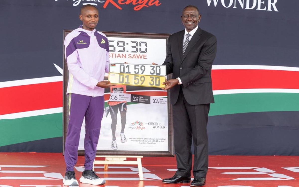En el acto de la State House, Ruto entregó a Sawe una matrícula automovilística keniana personalizada con los números 1:59:30 en honor a su histórico récord.