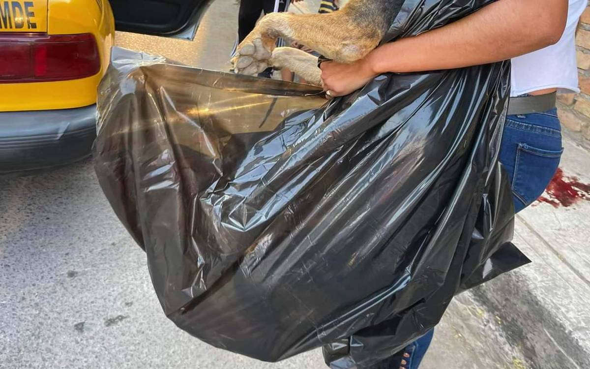 “Ayuda machucaron a este perrito aquí por lo metates y se está desangrando no tengo manera de trasladarlo a un veterinario ayúdenme el perrito es de la calle no tiene dueños 3112912317”.