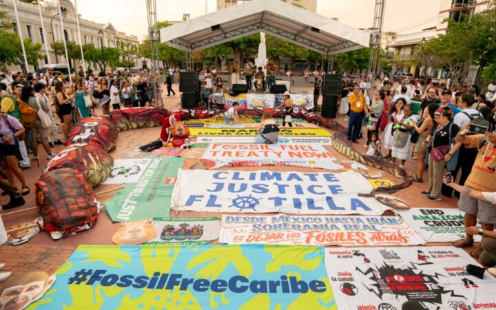 A principios de esta semana, una enorme serpiente rojiza de más de 10 metros bloqueó durante unos minutos —junto a varios paneles solares— el ingreso a uno de los puertos de exportación de carbón más importantes de Colombia, el puerto Drummond. Era parte de una manifestación convocada por una coalición de activistas ambientales de la Flotilla por la Justicia Climática, que llegaron a la ciudad de Santa Marta luego de 13 días de travesía por el Caribe.