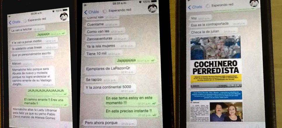 Mensajes de texto del gobernador de Quintana Roo, Roberto Borge -a través de WhatsApp-, confirmarían la manipulación de la información en el estado, de la cual presume encargarse él mismo, pero “aún sabiendo que es verdad, negó estas conversaciones”, dijo la diputada panista Alicia Ricalde.