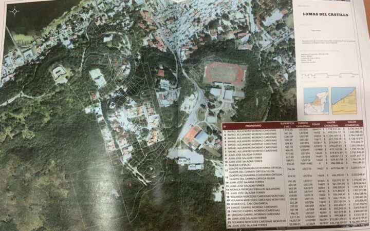 MCCI señala que “los terrenos en Lomas del Castillo están delimitados por una barda de mampostería de piedra con una altura de cuatro metros“, misma que se verá afectada por la expropiación y la construcción del plantel escolar.