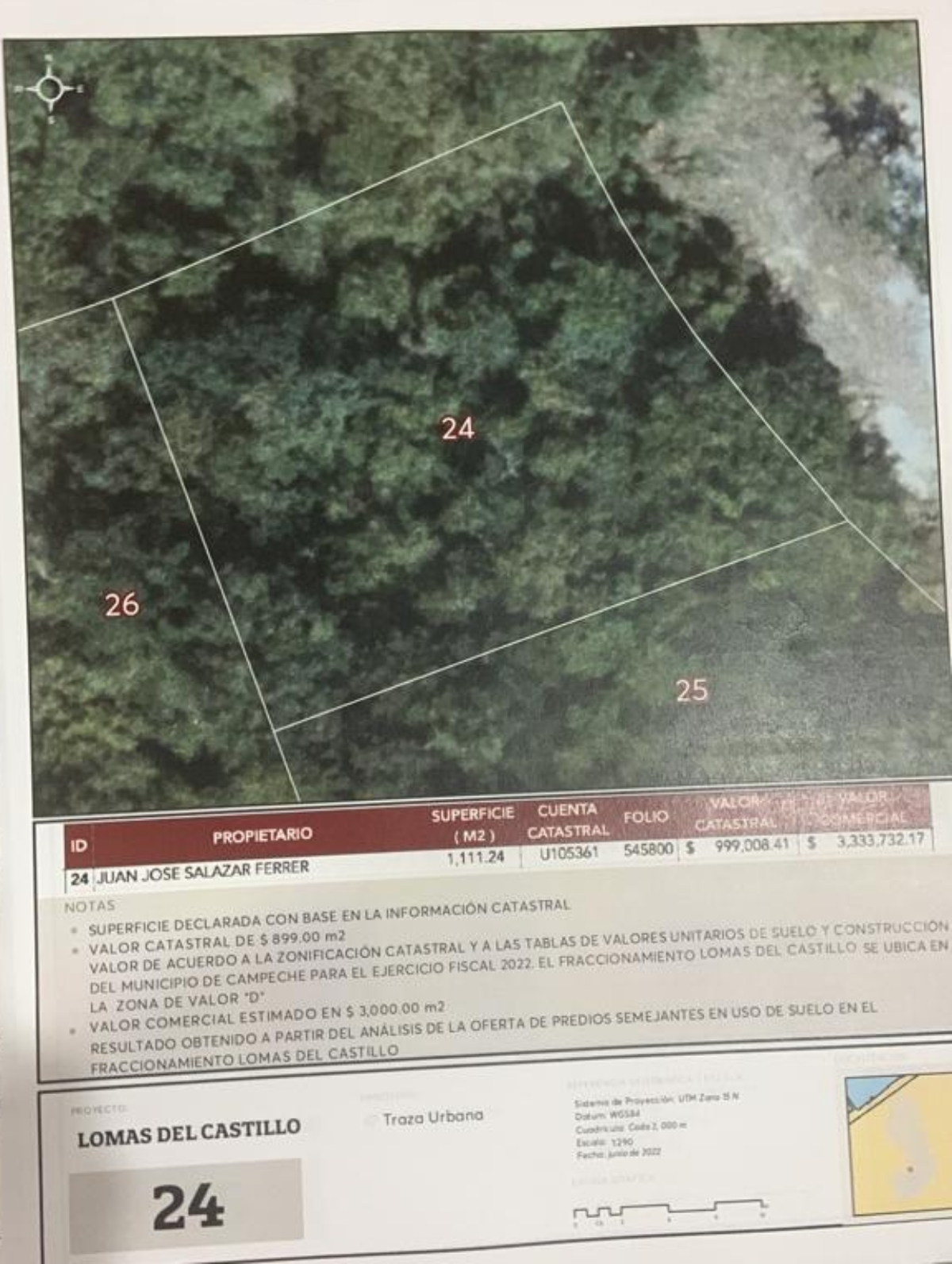 Sobre los predios expropiados, los documentos en poder de Aristegui Noticias indican que el valor comercial del primer predio a nombre de Yolanda Cárdenas Moreno, mamá de Alejandro Moreno, tiene una superficie de 14,557 metros cuadrados, un valor catastral de 13 millones y un valor comercial estimado de 43 millones 672 mil pesos.