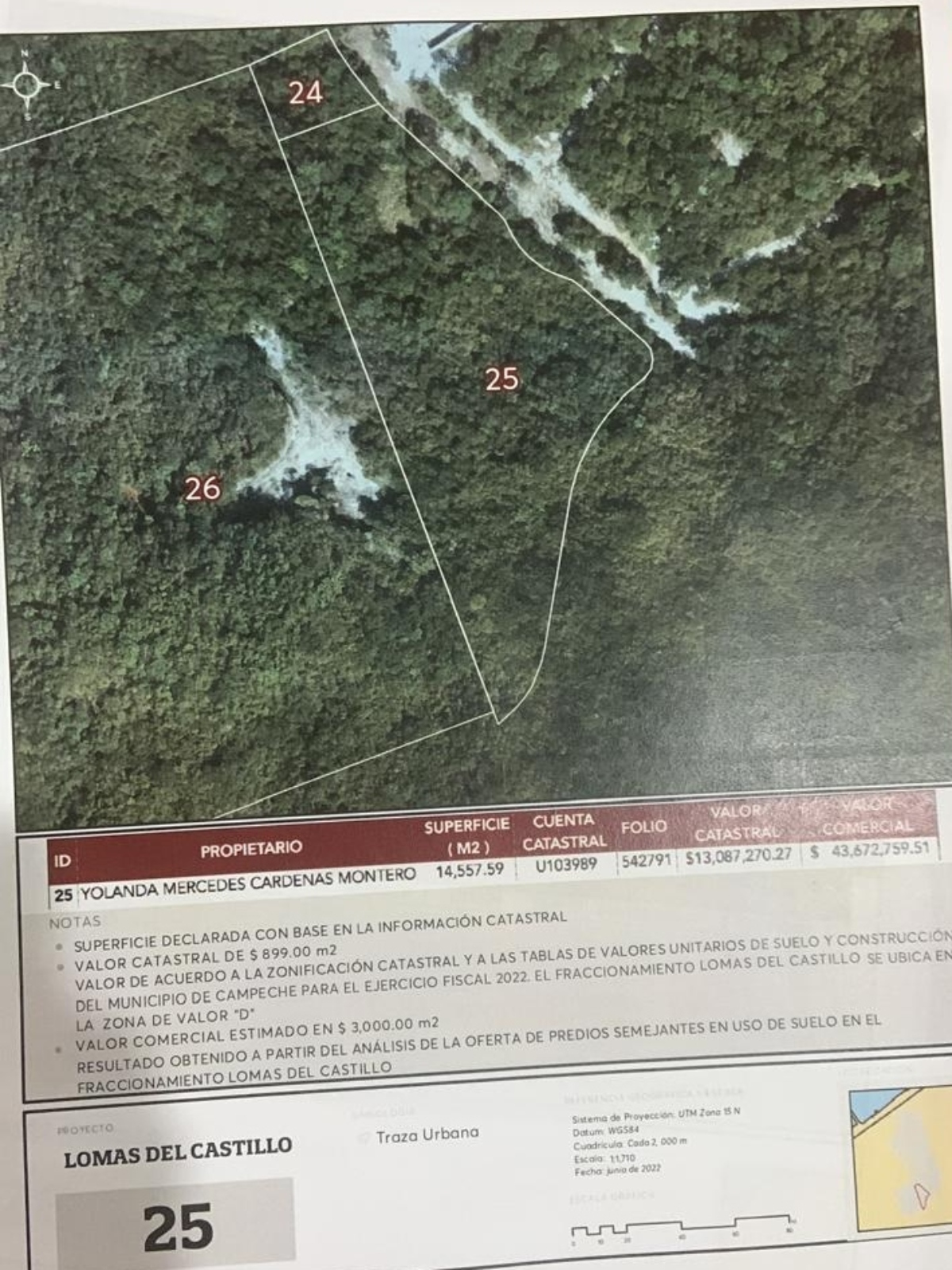 a) POLÍGONO I DESMEMBRADO DEL PREDIO DENOMINADO MIRAMAR, UBICADO EN LA CIUDAD DE SAN FRANCISCO DE CAMPECHE, CAMPECHE; CON UNA SUPERFICIE DE TERRENO DE 01-45-57.681 HAS, inscrito ante el Registro Público de la Propiedad y deComercio del Estado bajo el folio real electrónico 542791, a favor de la C. YolandaMercedes Cárdenas Montero.