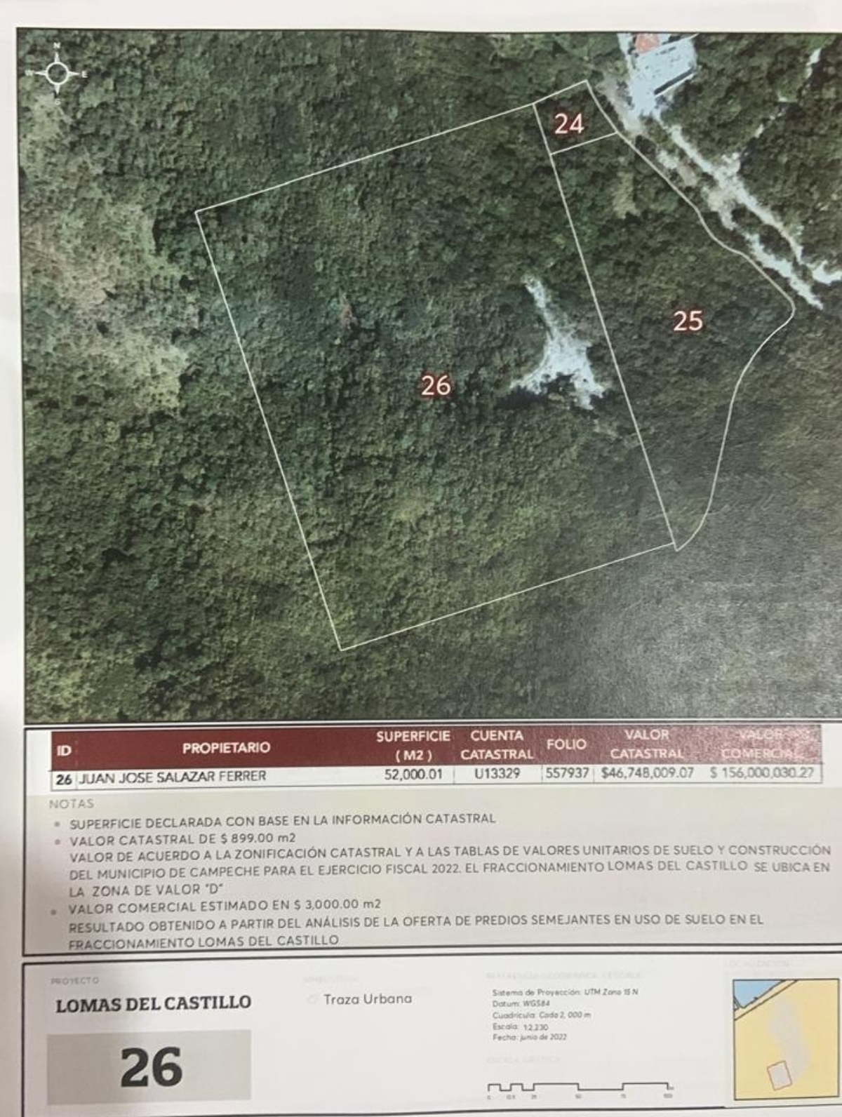 c) PREDIO UBICADO EN AVENIDA RESURGIMIENTO SIN NÚMERO EN EL FRACCIONAMIENTO MIRAMAR, UBICADO EN LA CIUDAD DE SAN FRANCISCO DE CAMPECHE, CAMPECHE, CON UNA SUPERFICIE DE TERRENO DE 52,175.57 M2 inscrito ante el Registro Público de la Propiedad y de Comercio del Estado bajo el folio real electrónico 557937, a favor del C. Juan José Salazar Ferrer.