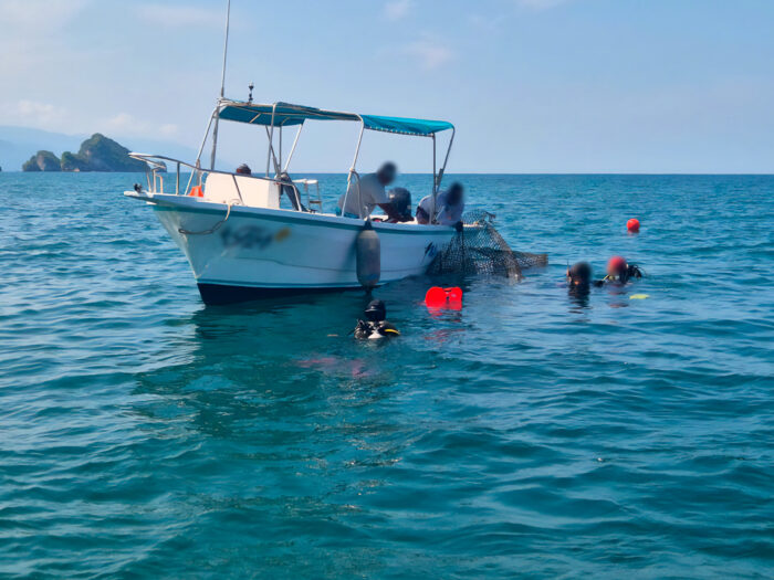 De acuerdo con la Profepa, la labor “demandó todo el conocimiento técnico de los buzos, quienes trabajaron sumergidos hasta lograr retirar la red y subirla a la superficie, para fragmentarla y sacarla por completo del mar”.