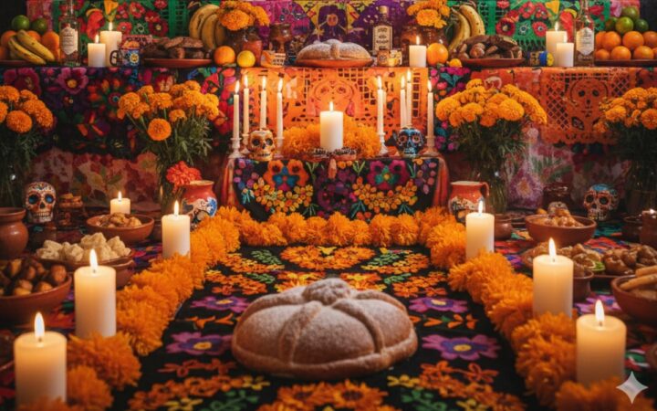 Uno de los elementos más representativos de las ofrendas, el pan de muerto tiene un origen complejo que mezcla prácticas prehispánicas, imposiciones coloniales y una evolución culinaria que continúa hasta nuestros días.