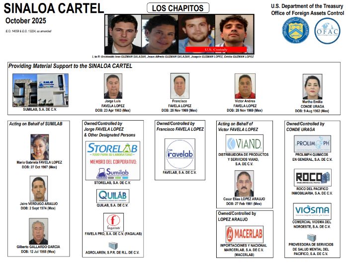Iván Archivaldo Guzmán, -líder de Los Chapitos- junto con tres de sus hermanos, es uno de los objetivos prioritarios del gobierno de Estados Unidos, donde enfrenta cargos federales por narcotráfico y conspiración para traficar fentanilo.