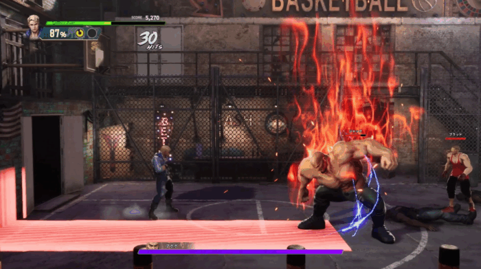 Este es el pretexto necesario para que arranque nuestro juego, que sin más, lanza al usuario a las calles a repartir golpes a diestra y siniestra. Double Dragon Revive mantiene su estructura: avanzar, golpear, recoger armas y repetir el patrón, pero se le busca dar más profundidad al combate mediante golpes finales, ataques especiales y hasta movimientos estratégicos para meter a los malos dentro de contenedores, atravesar ventanas y hasta sacarlos del escenario cuando los enfrentamientos ocurren en puentes.
