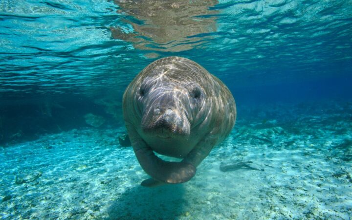 El manatí es un mamífero herbívoro de comportamiento tranquilo que fue declarado en 2014 como símbolo nacional de la fauna marina de Costa Rica, pero es una especie en grave peligro de extinción debido a riesgos como la pérdida de hábitat, el impacto de lanchas, las redes de pesca, la contaminación por cultivos como la piña y el banano, y la cacería.