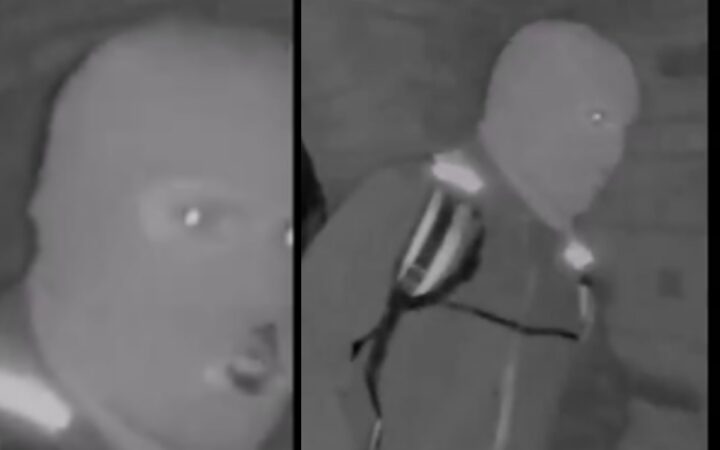 El sujeto encapuchado lleva una lámpara en la boca, guantes y al menos dos materiales reflectores de luz en la mochila.