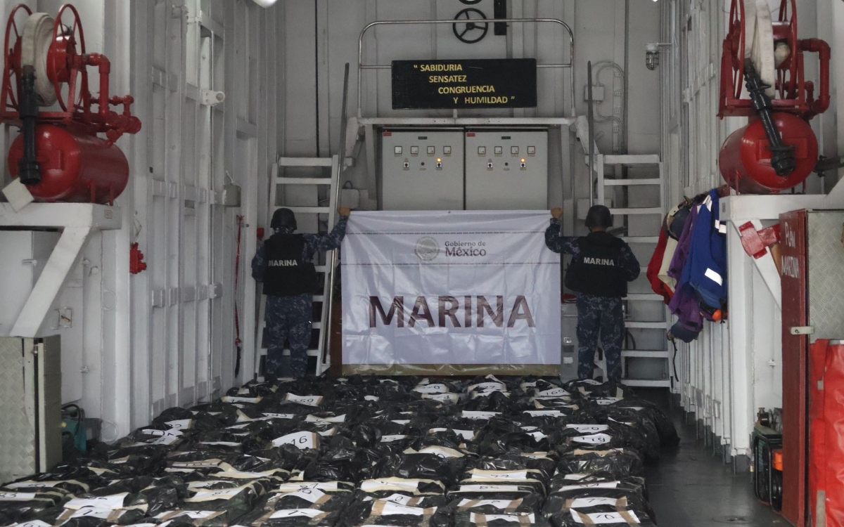 La Marina infirmó que fueron incautados 188 bultos grandes de la droga a más de 700 kilómetros de Colima tras interceptar una embarcación en altamar
