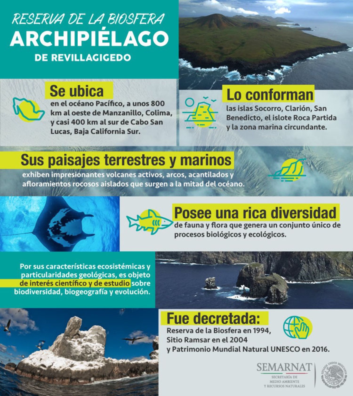 La Isla Clarión tiene una extensión de 1.80 metros cuadrados y se le considera un área natural protegida desde 1994, por lo que está totalmente deshabitada.