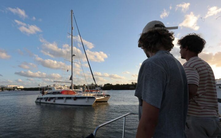 Adnaan Stumo, coordinador marítimo de la iniciativa, explicó que se prevé mal tiempo en la travesía, razón por la que finalmente fue retrasada la salida de los dos veleros de Isla Mujeres.