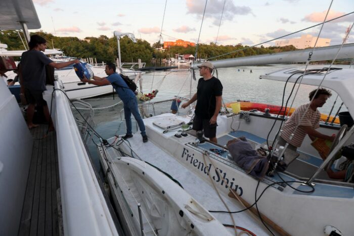 En paralelo, en Isla Mujeres unas 30 personas -entre residentes extranjeros, población local y voluntarios provenientes de Cancún, Playa del Carmen y Puerto Morelos- participaron en el acopio y traslado de víveres hacia los veleros que se espera puedan zarpar en las primeras horas del sábado, si las condiciones lo permiten.